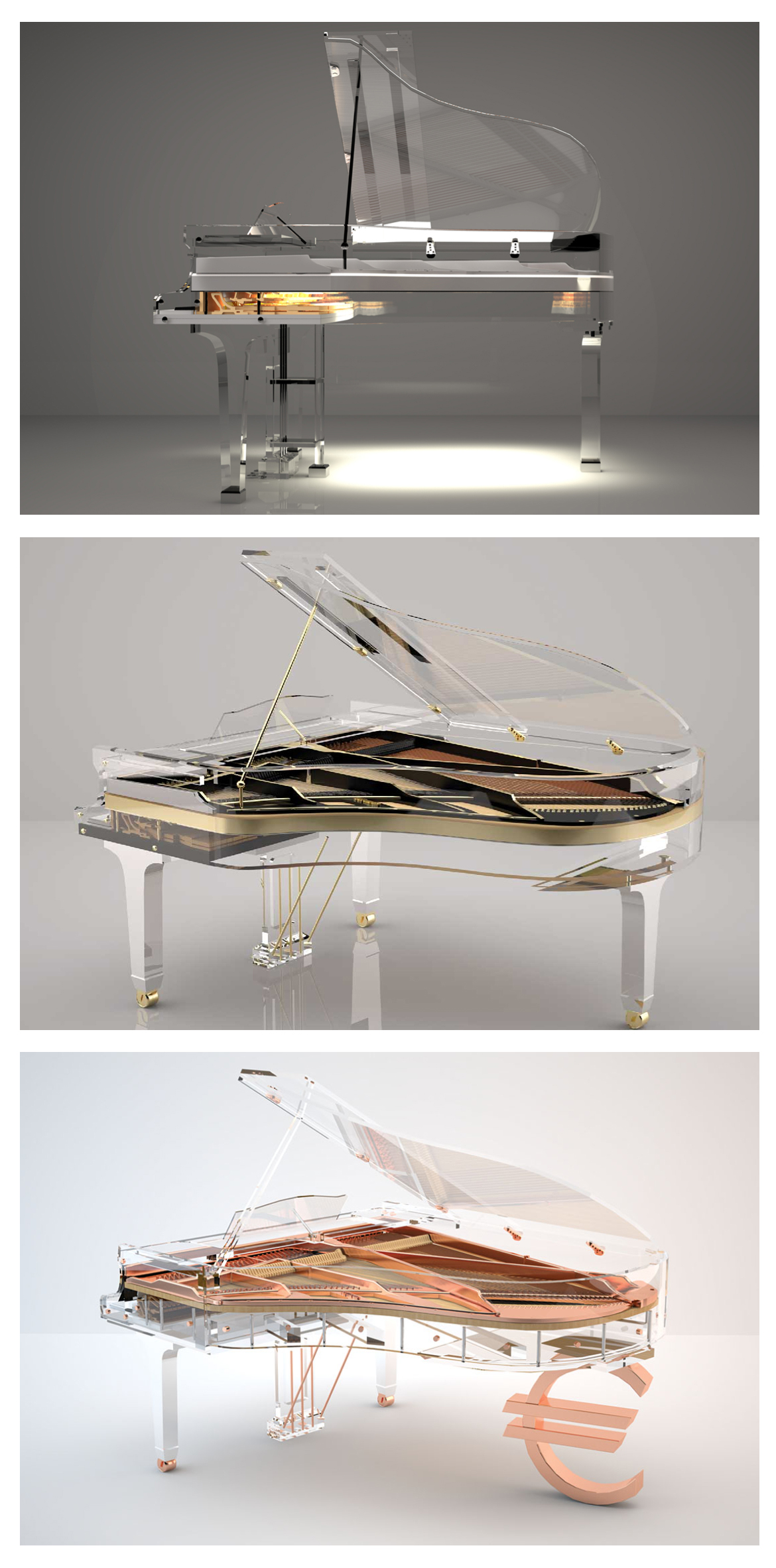 所有博蘭斯勒三角鋼琴(Model11除外)均配備博蘭斯勒專利Aliquot弦列系統(tǒng)。在鋼琴最高音區(qū),每個琴鍵配有四根琴弦,其中一根額外琴弦略高于其他琴弦且不受琴槌擊打。這根共鳴弦會與演奏的音符產(chǎn)生同振共鳴,從而增強(qiáng)音效,營造出豐富、溫暖且多彩的音色。該體系由尤利烏斯·博蘭斯勒于一個半世紀(jì)前研發(fā),被視為"博蘭斯勒黃金音色"的核心要素。