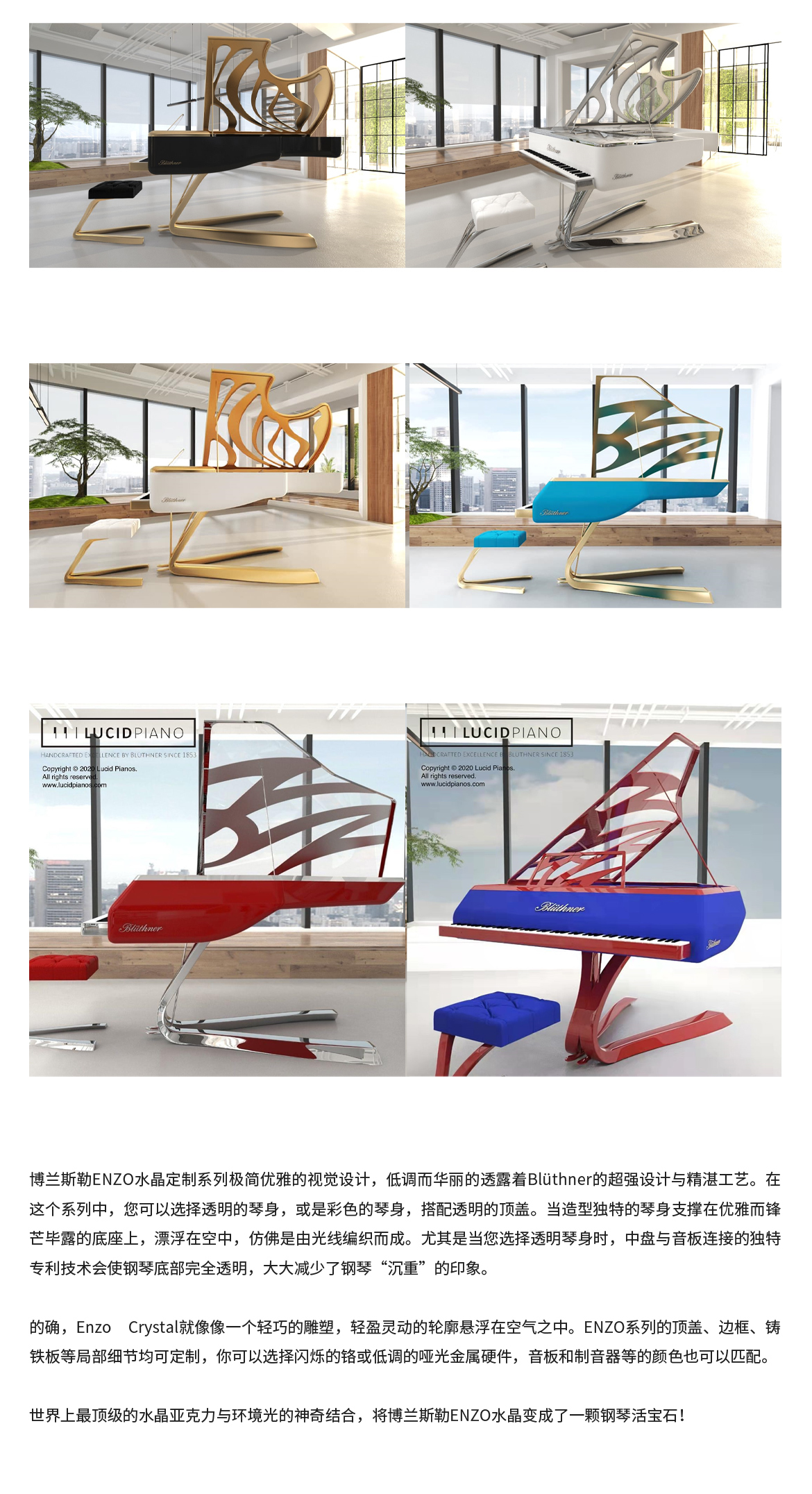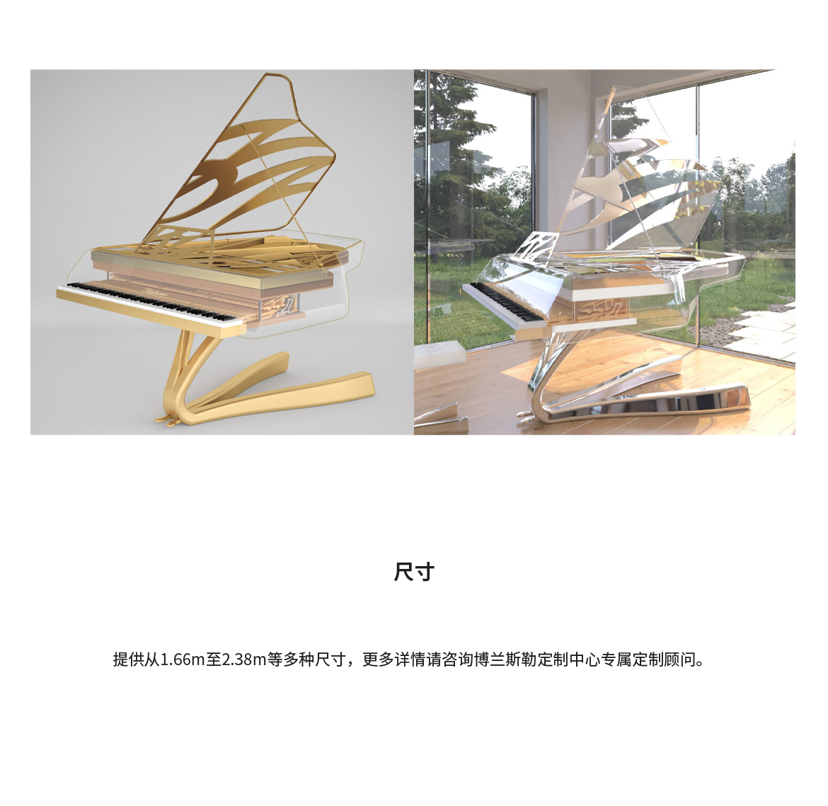 每臺鋼琴均接受定制,可根據(jù)您的品味或需求指定特殊飾面與個性化裝飾。從典雅的鑲木板材與手工雕刻鑲嵌工藝,到最具創(chuàng)新性的現(xiàn)代藝術(shù)造型,博蘭斯勒皆可助您實(shí)現(xiàn)美學(xué)構(gòu)想。