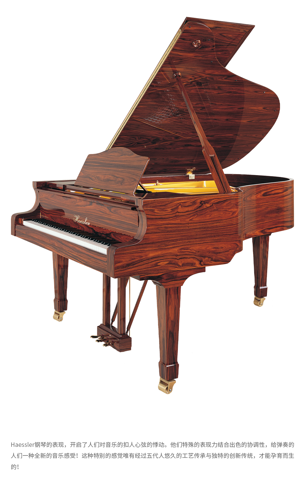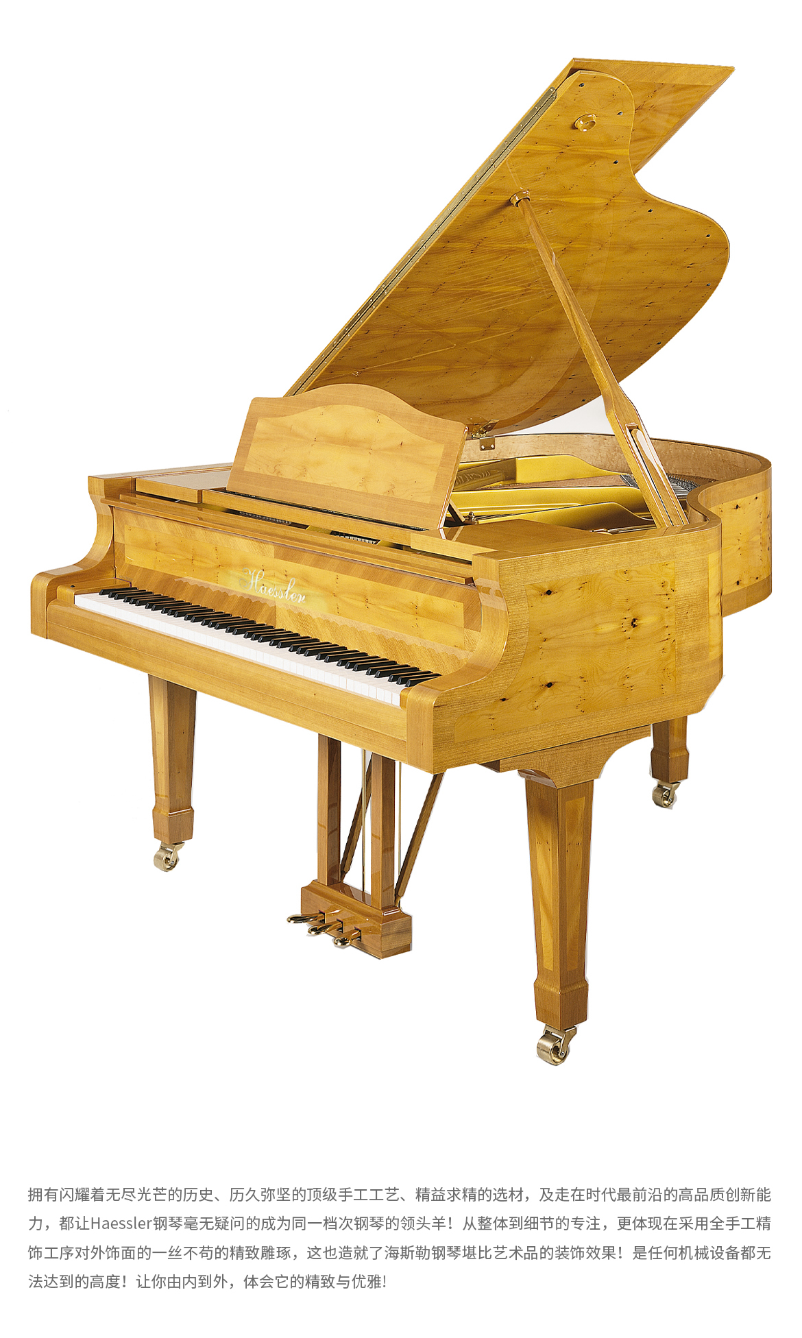 每臺(tái)鋼琴均接受定制,可根據(jù)您的品味或需求指定特殊飾面與個(gè)性化裝飾。從典雅的鑲木板材與手工雕刻鑲嵌工藝,到最具創(chuàng)新性的現(xiàn)代藝術(shù)造型,博蘭斯勒皆可助您實(shí)現(xiàn)美學(xué)構(gòu)想。